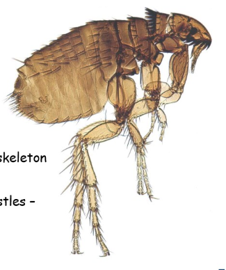 Describe the anatomy and function of the exoskeleton/cuticle of fleas