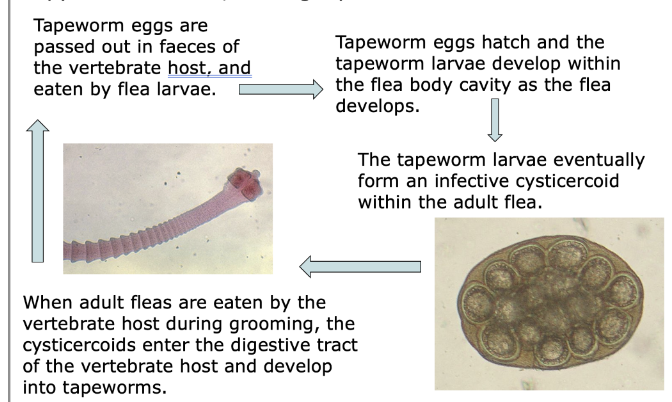Describe how fleas act as an intermediate host for Dipylidium caninum (dog tapeworm)