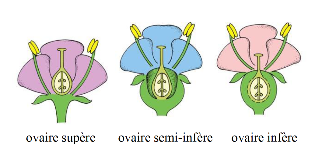 Que sont les différentes position de l’ovaire par rapport aux autres