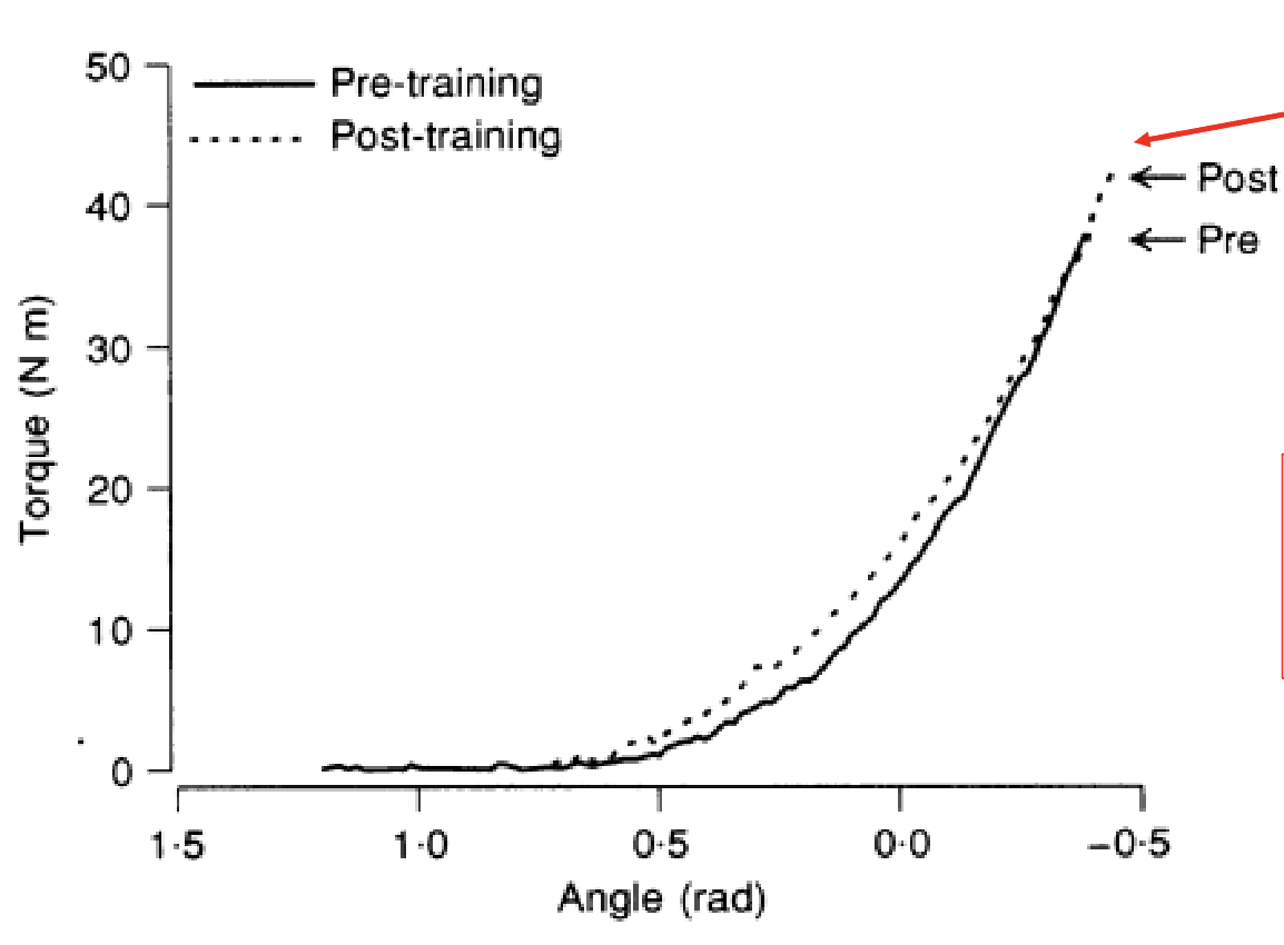 Some studies show reduced stiffness (changes in passive torque-angle).