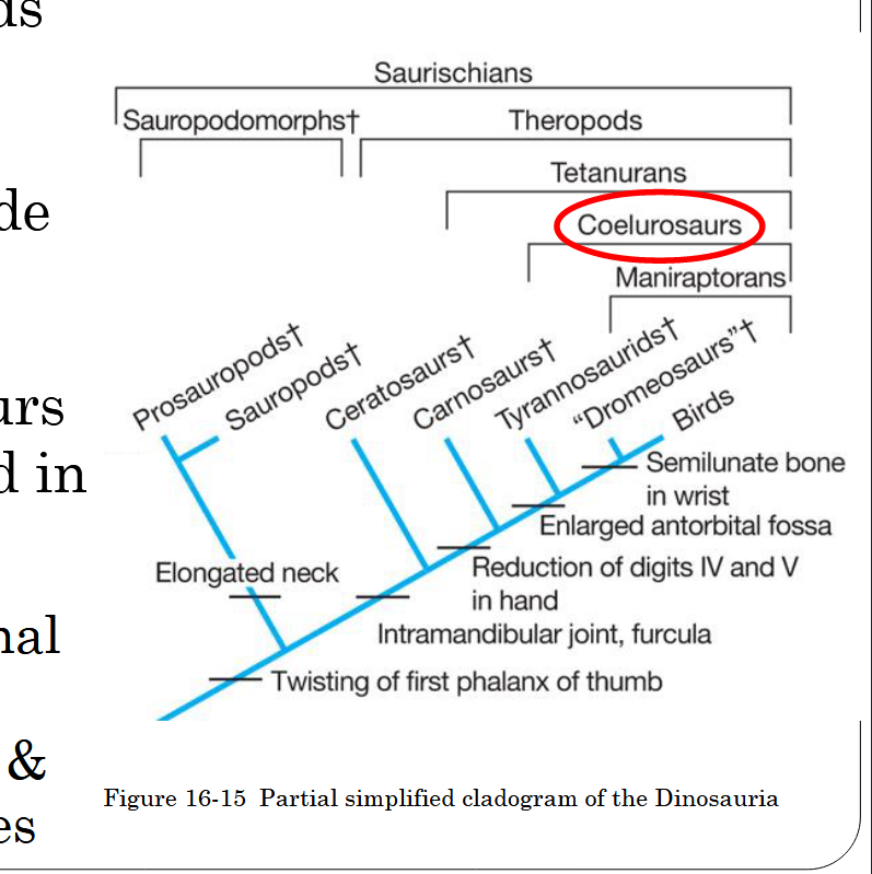• Synapomorphies: birds and generalized theropods