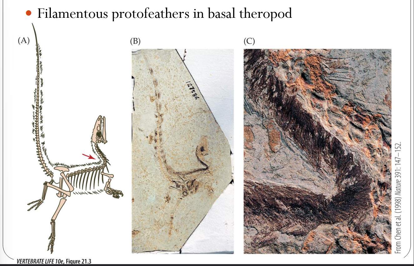 • Protarchaeopteryx & Caudipteryx • Late jurassic to early cretaceous • Liaoning, china • Vaned feathers ○ Flat surfaces on both sides of a central shaft