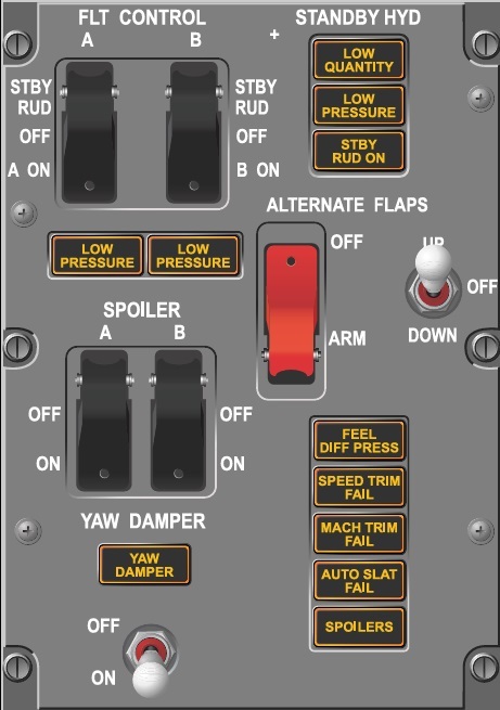 The rudder is operated by the Standby Hydraulic system, and the Yaw Damper is available.
