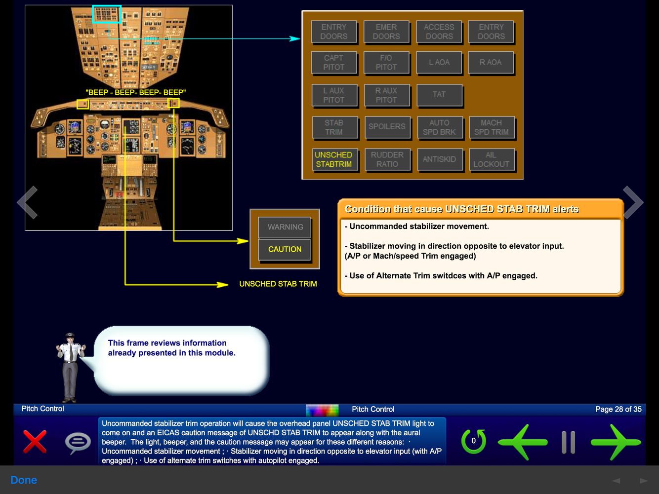 UNSCHED STAB TRIM panel light indicates?