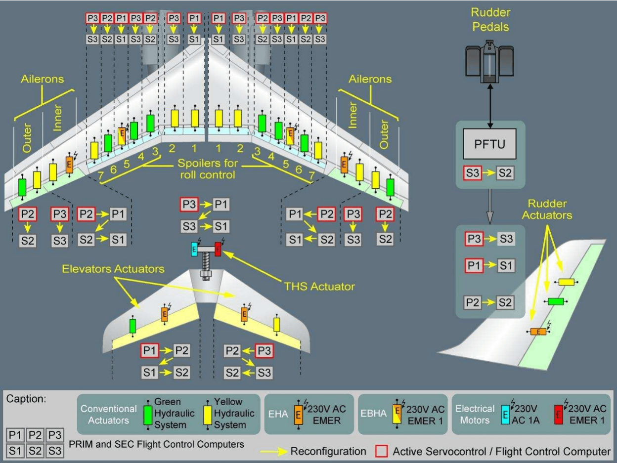 PRIMs compute all control laws, Normal, Alternate and Direct.