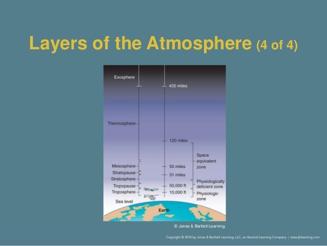 Physiologic zones of the atmosphere (from earth to space)