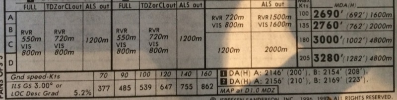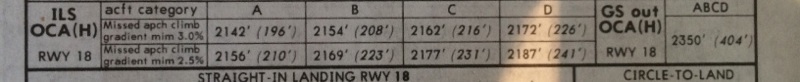 OCLA and OCLH broken down in to the catagories of aircraft based on two different missed approach climb gradiants.
