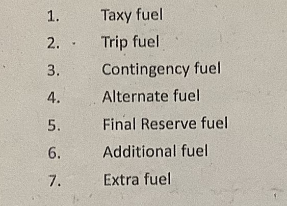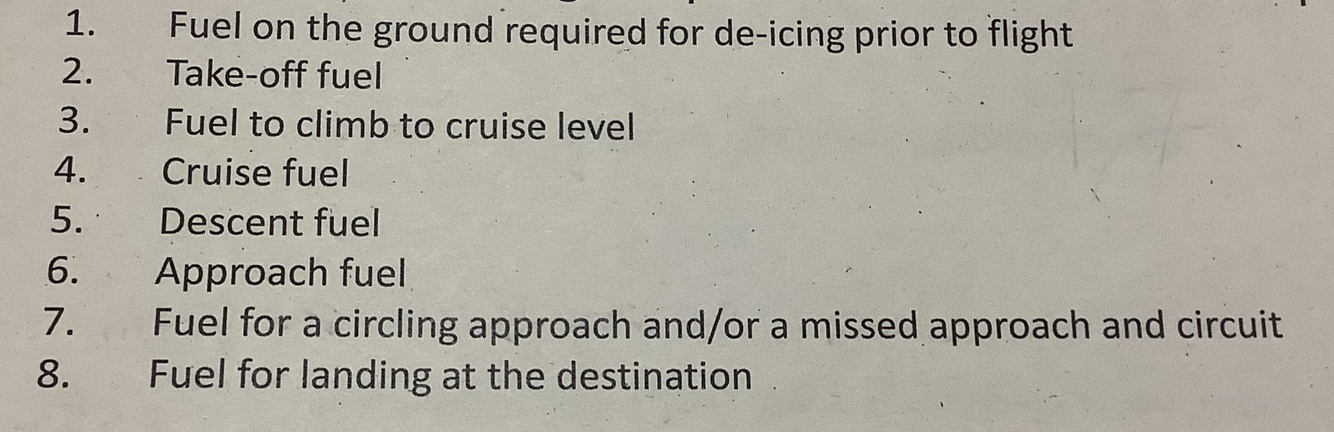 Which of the following fuel elements is included in fuel calculations for Performance A aeroplanes?
