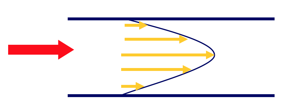Fluid moves in organised layers through tube. Velocity will be highest in the centre of the tube and lowest at the outer edges.