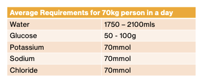Remaining 1/3 of K+, 1/4 of water and glucose