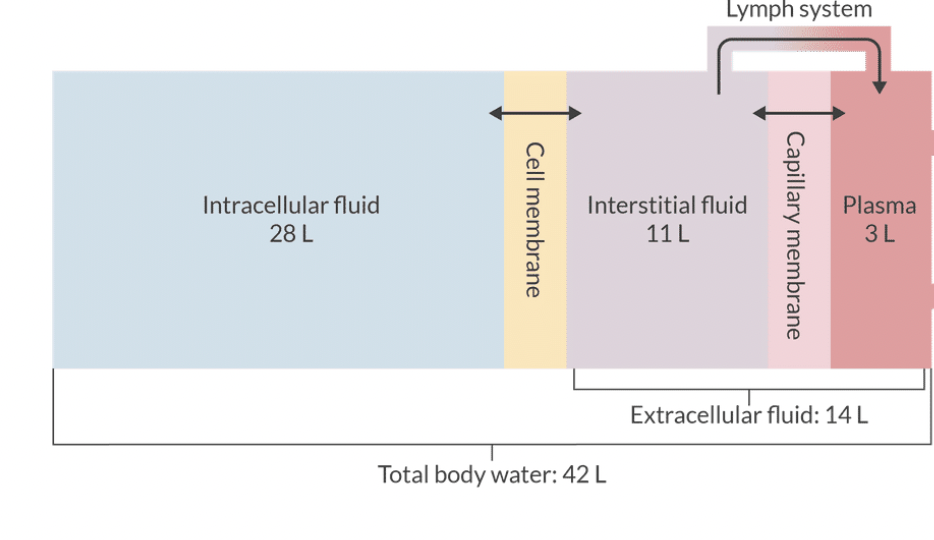 (15% / 11 L) (5% / 3 L)Major ECF ions