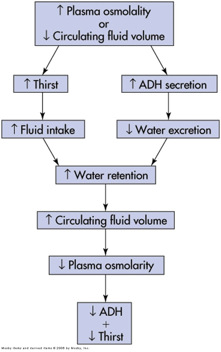 Increased plasma osmolality or decreased fluid volume….