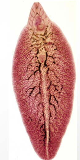 eggs release in feces –> miracidia get released from eggs and miracidia enter intermediate host –> asexual repro happens in intermediate host and produce cercariae –> can either develop into infective stage metacercaeriae or encyst as meracercaeiae 2nd intermediate host –>metacercariae inside definitive and develop into adult fluke
