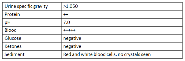 • Clinical examination is otherwise unremarkable, his bladder is small and not painful when you palpate it