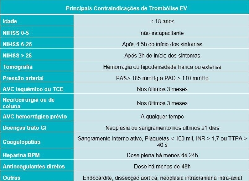 PRINCIPAIS CONTRAINDICAÇÕES DE TROMBOLISE EV NO MANEJO DE AVCi? (14)
