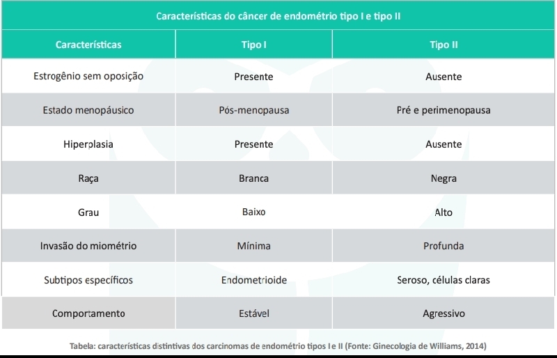Características do câncer de endometrio tipo 1 e tipo 2?