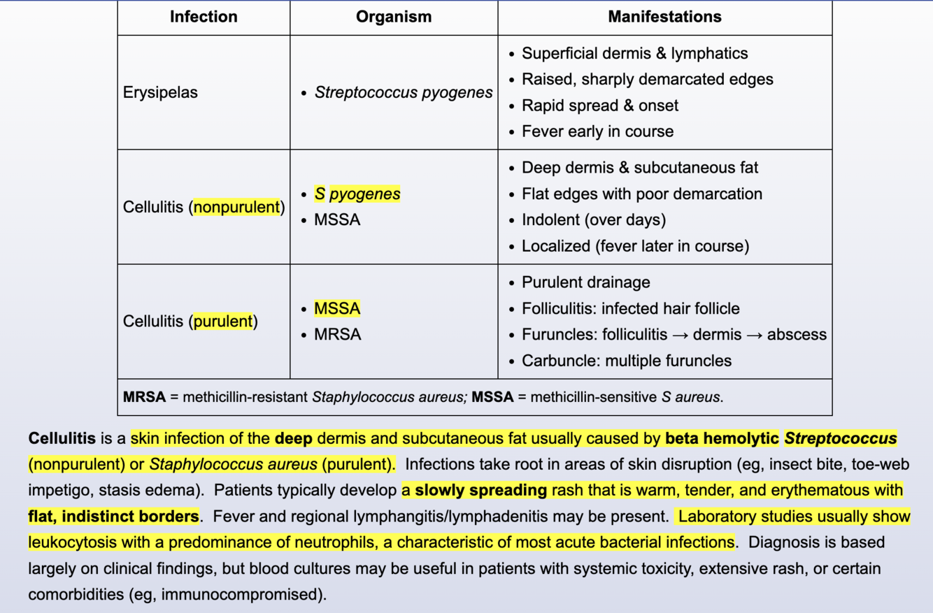 Purulent vs. Nonpurulent Cellulitis MC bugs?