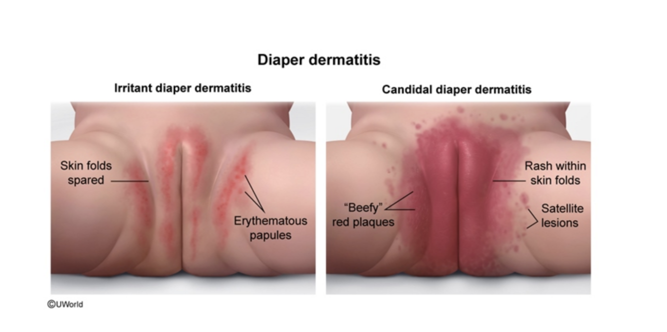 Irritant contact diaper dermatitis vs. Candida diaper dermatitis?