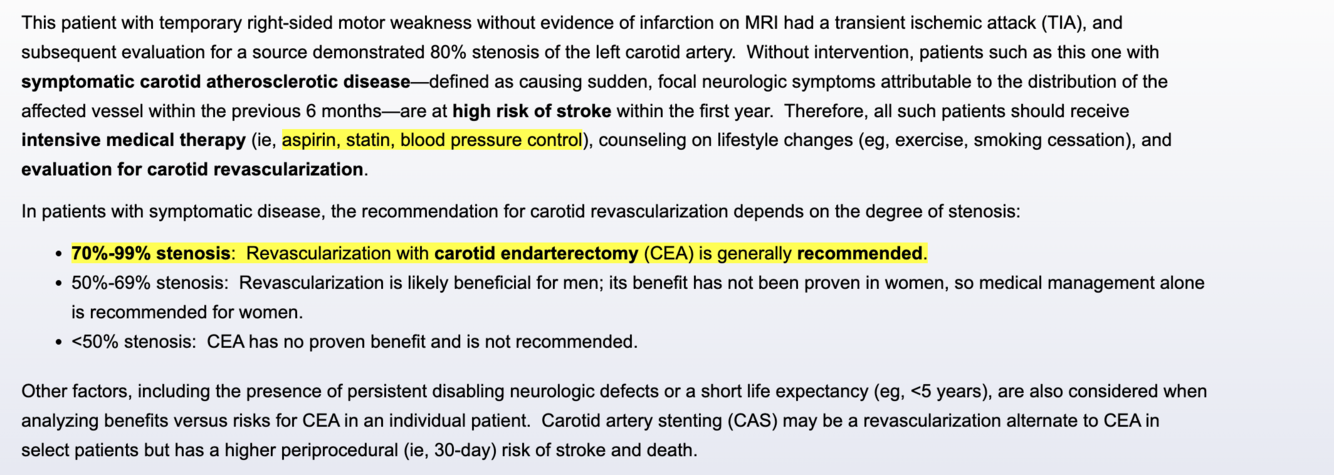 Recurrent HA caused by Carotid Artery Stenosis or aneurysm (Carotid Bruit)