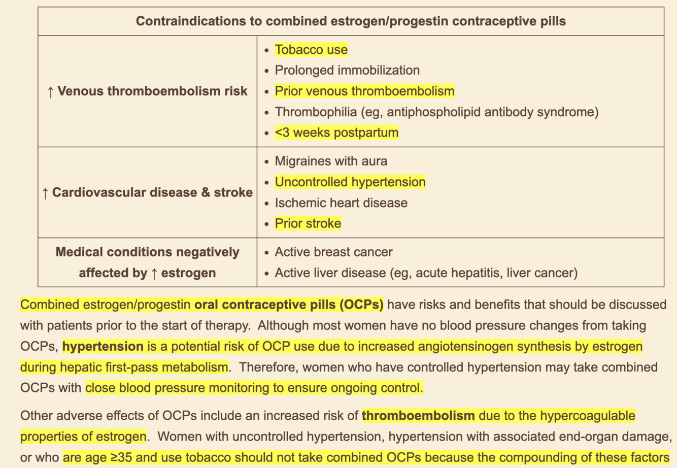 Smokers, prior VTE, Uncontrolled HTN, active breast cancer, greater than 35 YO