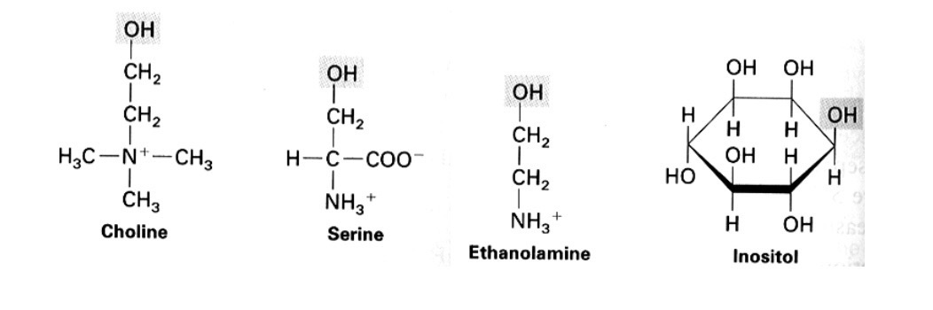 choline, serine, ethanolamine and inositol. These phospholipids are called