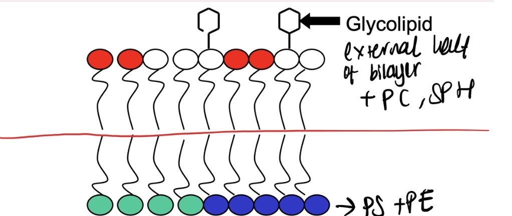 in lipid bilayers, out of these 4: PC, PS,SPH,PE - which faces the extracellular environment and which faces the cytosolic side?