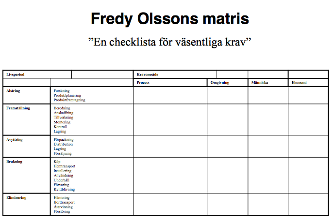 Pugh’s ballonger och/eller Freddy Olssons matris (checklista för väsentliga krav)