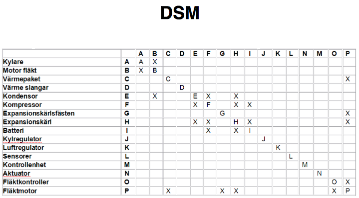 Vad beskriver en DSM (Design Structure Matrix)?