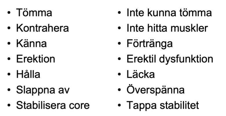 träningar, instabilitet, smärta, kan int eknipa, sämre sexuell funktion