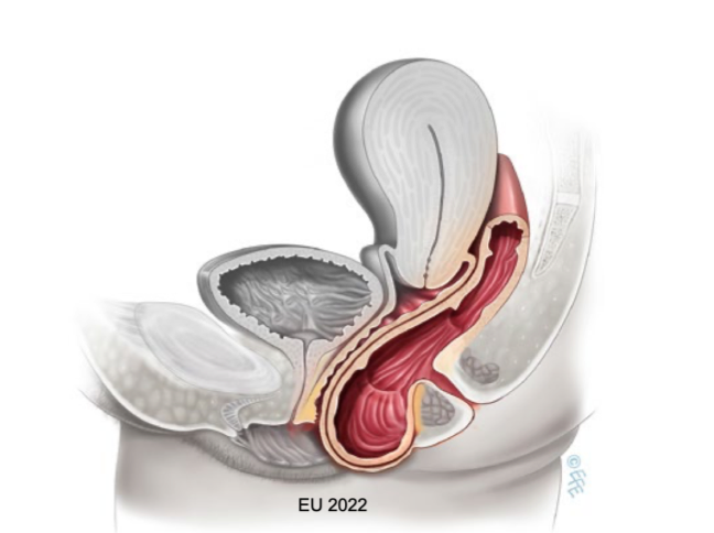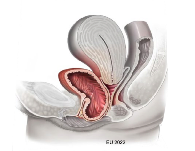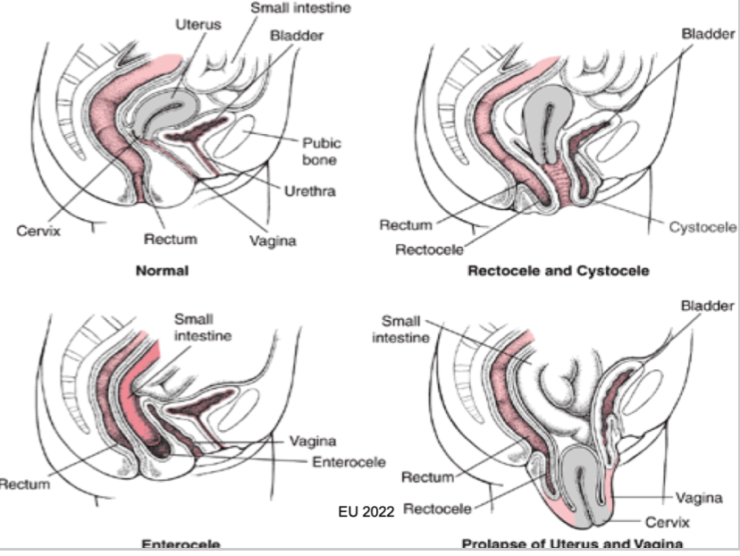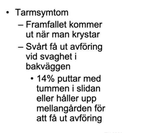 att behöva puttta upp = patognomt med cystocele