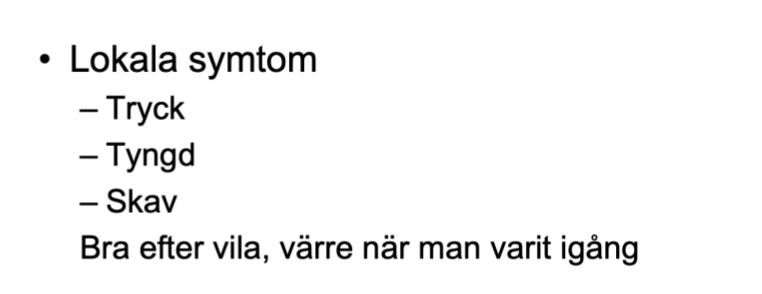 Symtom vid levatorbrisning