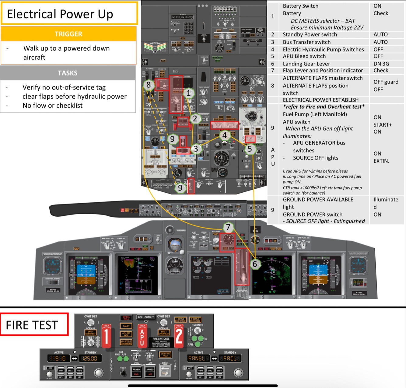 [Vol.1 5.8.1 Fire & Overheat System Test required PRE & POST APU start if no GPU]