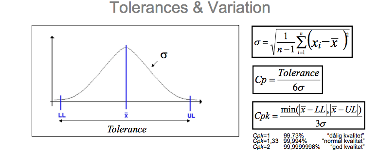 Geometrisk variation på individuella delar ( form och storlek) , samt monteringsvariation , påverkar krav på :