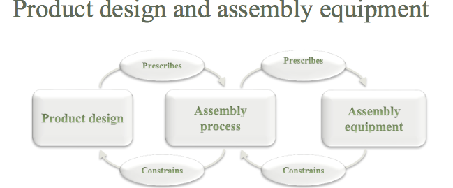 Måla upp relationerna med Produkt design, assembly process och assembly equipment!