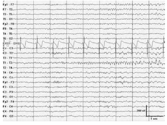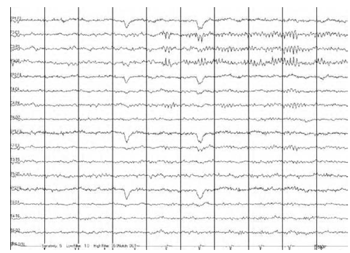 Subclinical seizure in a patient with encephalopathic generalized epilepsy. There were no clinical signs noted during multiple brief seizures