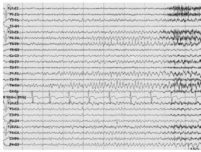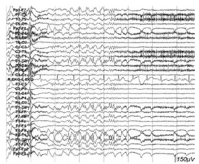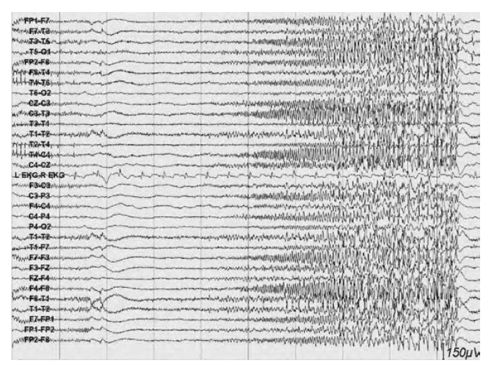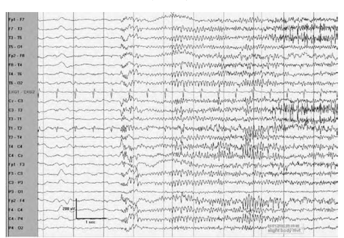 Nonlocalized ictal EEG in frontal lobe epilepsy. Notice the
