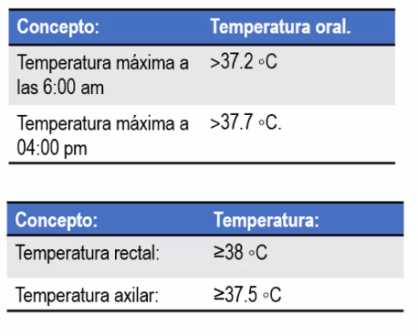 Temperatura oral a las 6 am y 4 pm y temp axilar y rectal