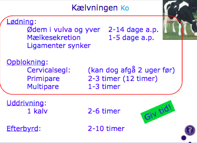 Hvornår sker de forskellige faser i kælvingen og hvor lang tid tager de? (lødning, opblok, uddrivning og efterbyrd)