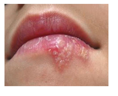 Caused by Herpes Simplex virus type 1 (HSV-1): After primary infection, the virus recedes via the sensory nerve intothe