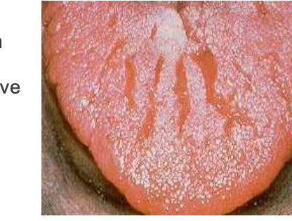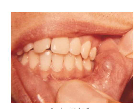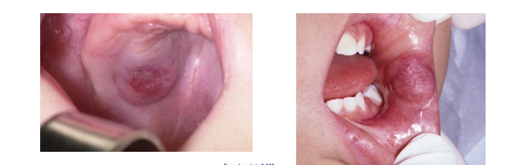 S: Site – Often seen on the roof of the palate (midpalatine raphe) or sometimes the mandibular ridge.