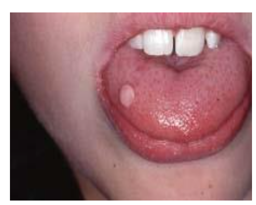 A: Affects floor of the mouth (found on the floor of the mouth)