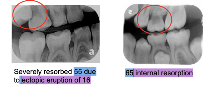 Extraction due to severe resorption (ectopic eruption, retained roots)