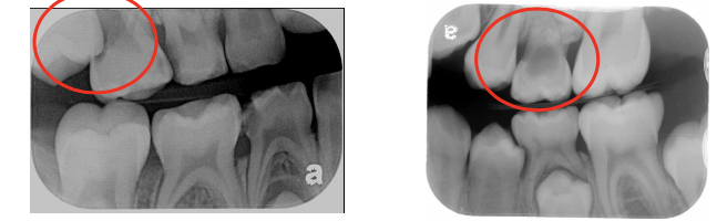 A: Ankylosed teeth (primary teeth blocking eruption of permanent teeth)