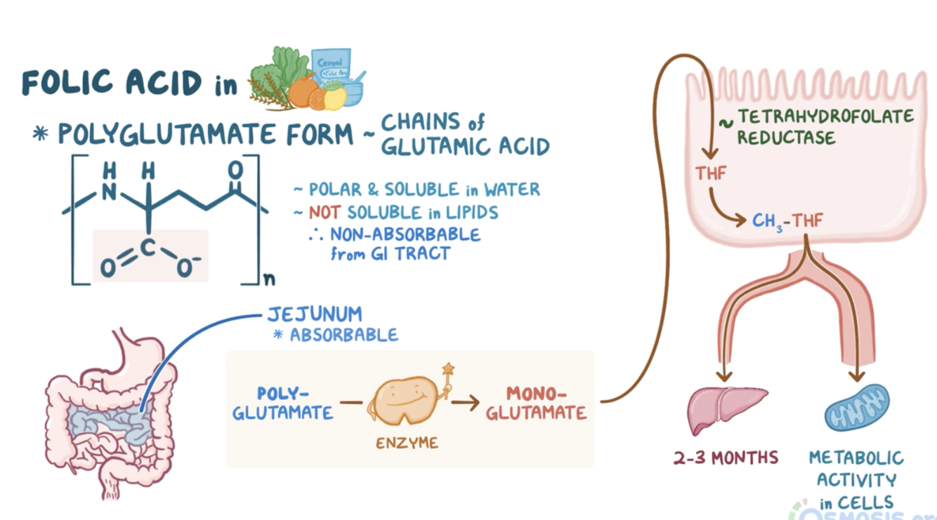 Concerted into THF in the epithelial cells of the jejunum