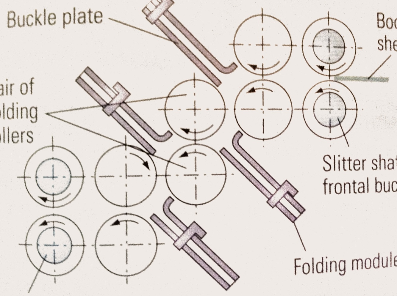 Folding machines with both buckle and knife folding systems (has vertical pile feeder)