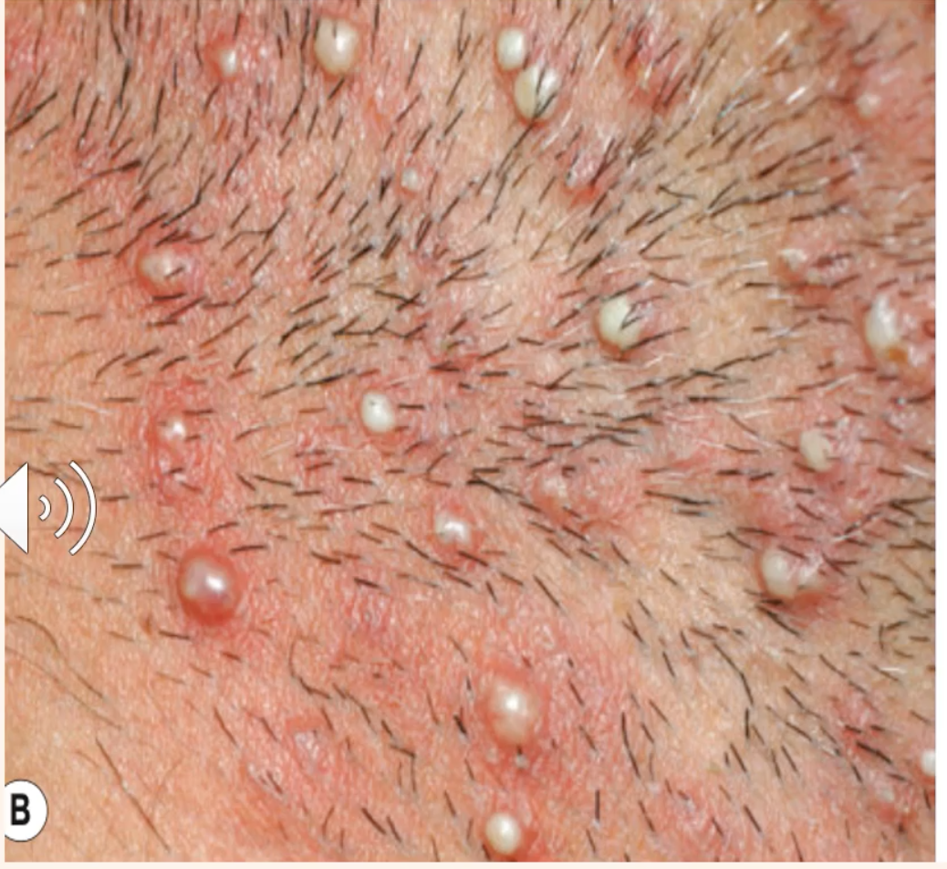 4 - >2 hair follicles that have a deep infection affecting surrounding skin