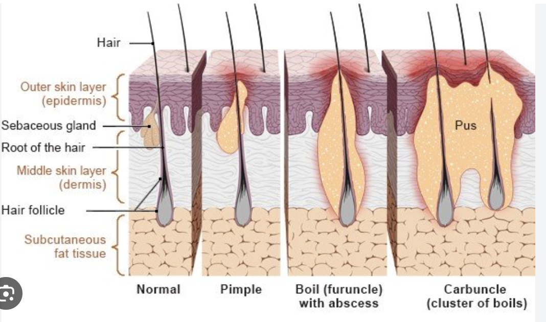 2 - deep infection of hair follicle that includes surrounding tissue