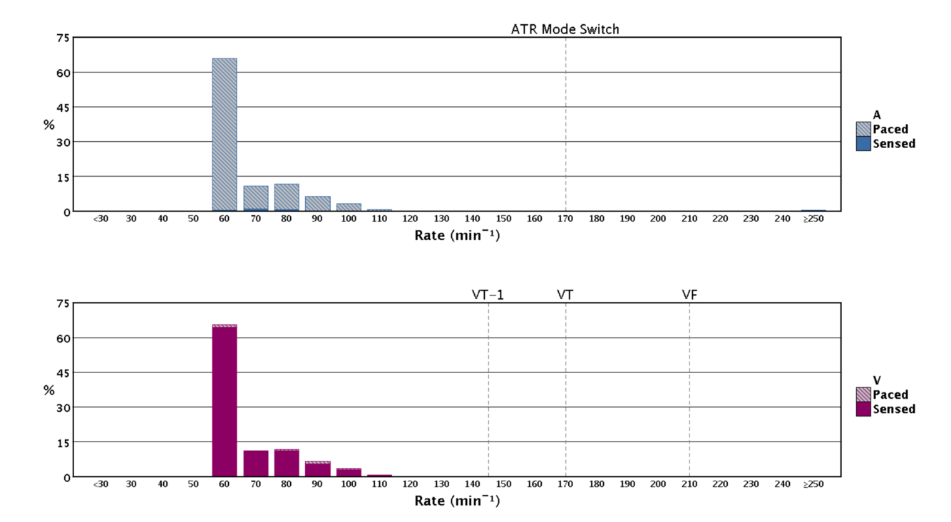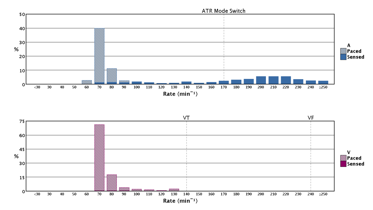 These algorithms aim to reduce RVp% by promoting intrinsic rhythm. This patient is clearly suitable for such treatment as 99% of V-events are sensed - thus evidencing intrinsic conduction.