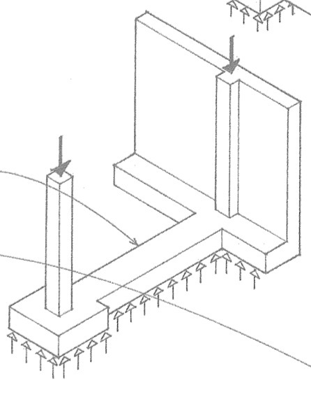 Semelle isolée raccordée à une autre semelle.