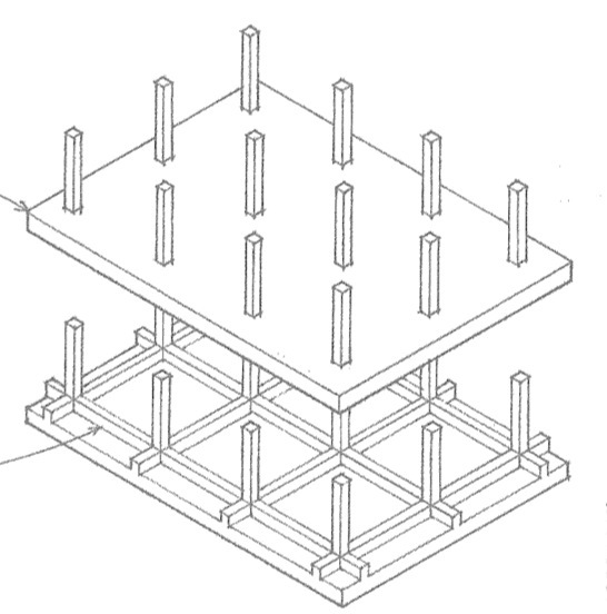 Empattement soutenant un poteau autoportant.